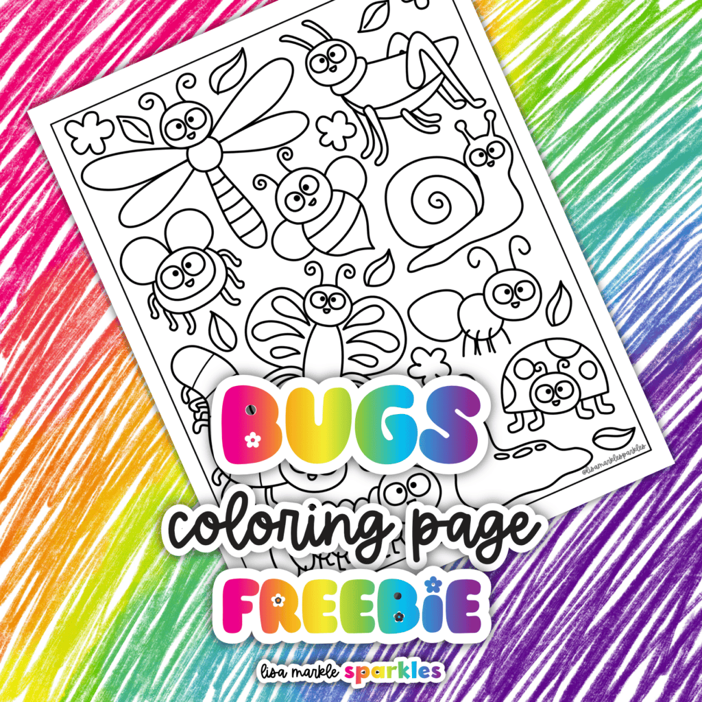 You can receive this free bug coloring page by clicking the rainbow graphic below and signing up for my email list. You’ll get the coloring page delivered right to your inbox, AND you’ll receive a brand new free coloring page every first of the month!