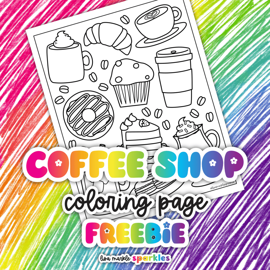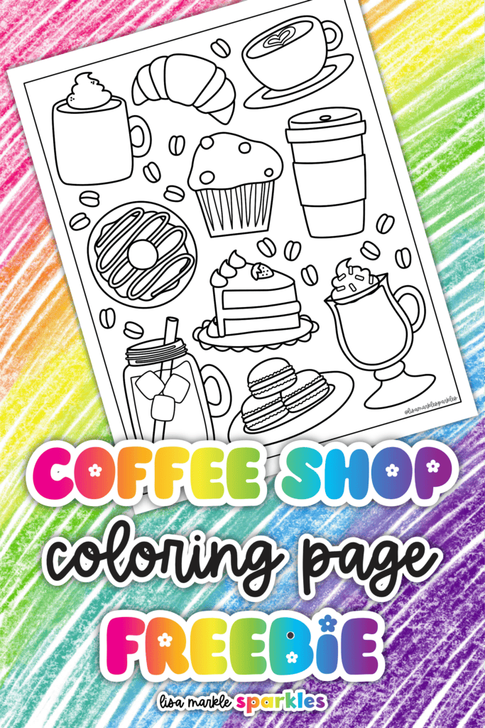 You can receive this free coffee shop coloring page by clicking the rainbow graphic below and signing up for my email list. You’ll get the coloring page delivered right to your inbox, AND you’ll receive a brand new free coloring page every first of the month!